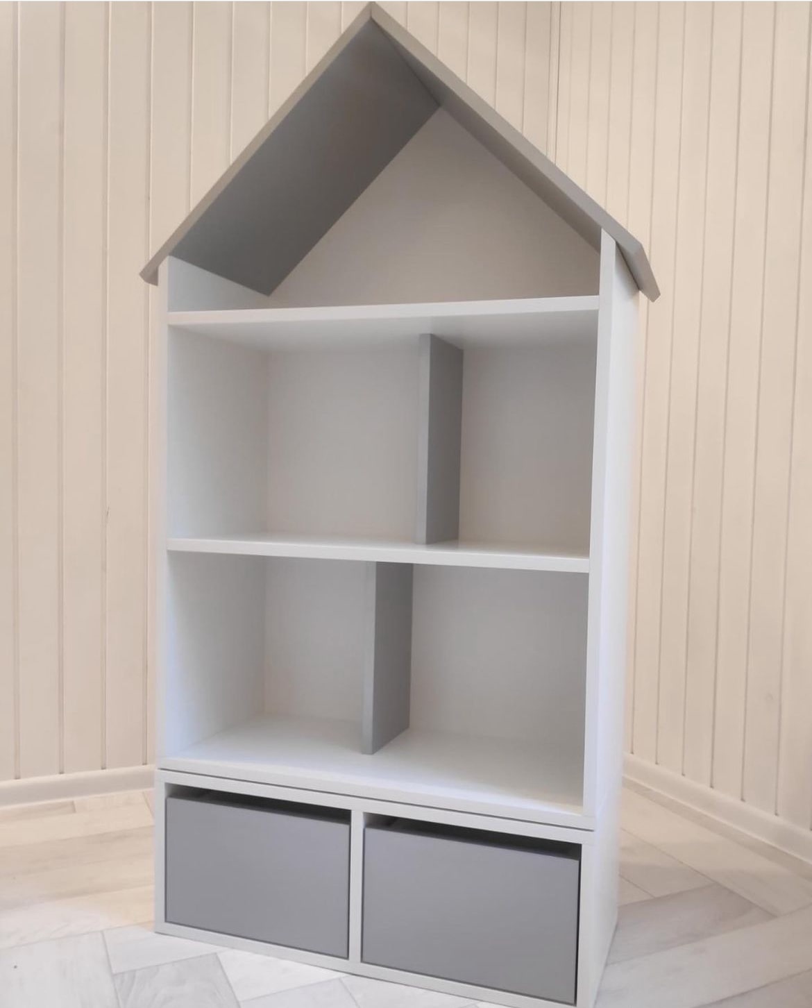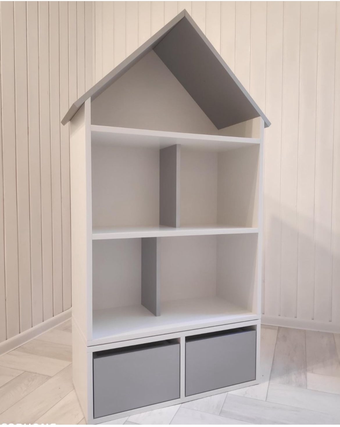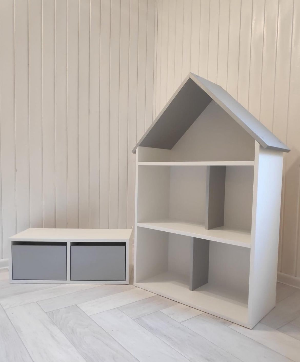 Модель домика из двух частей, нижний блок с выдвижными ящиками на шариковых направляющих полного выдвижения.