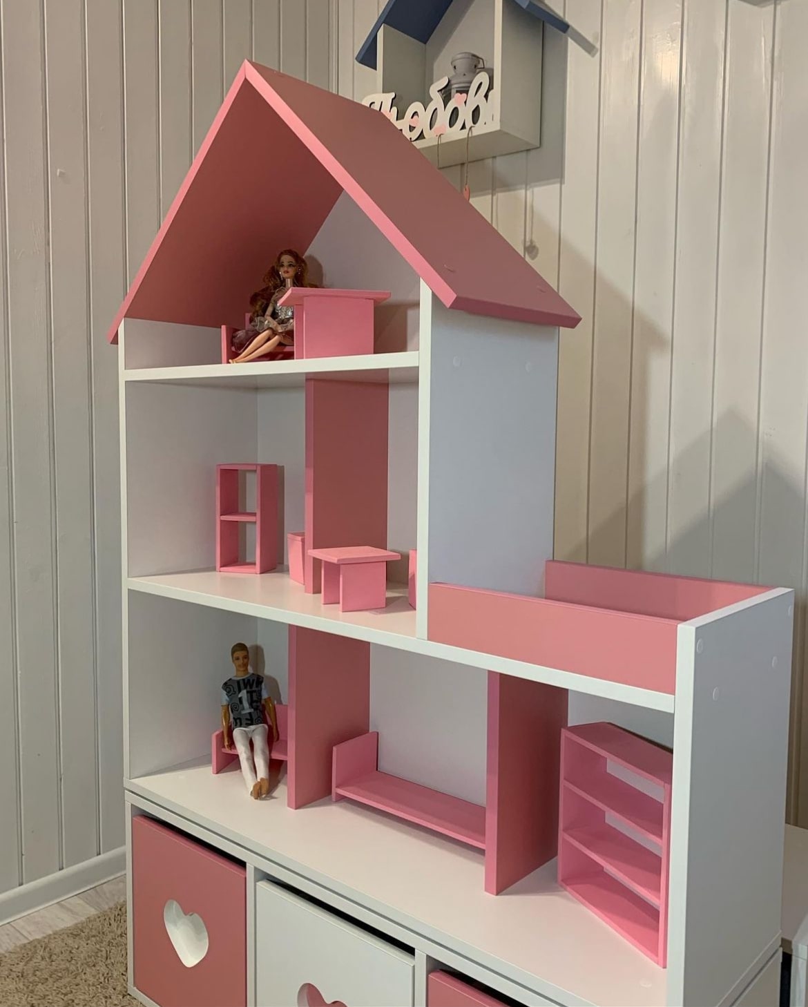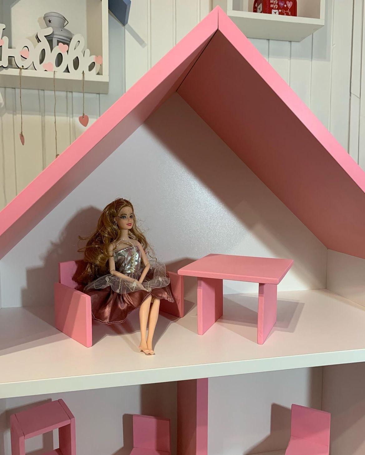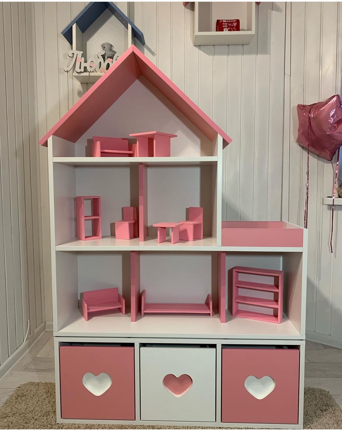 Вы ищете подарок для своей девочки на праздник? Кукольный домик с мебелью станет идеальным сюрпризом, который порадует вашего ребенка и дополнит интерьер комнаты. Отдельно вы можете приобрести набор кукольной мебели в цвет домика! Возможно изготовление изделия в различной цветовой гамме, в различных вариациях фрезеровки и размерах.
