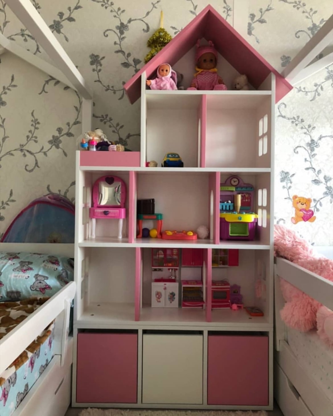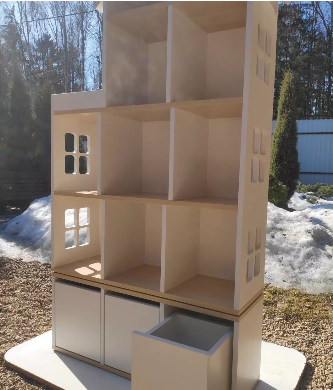 Домик с блоком выдвижных ящиков в цвете белый + клён. Можно составлять один на один.