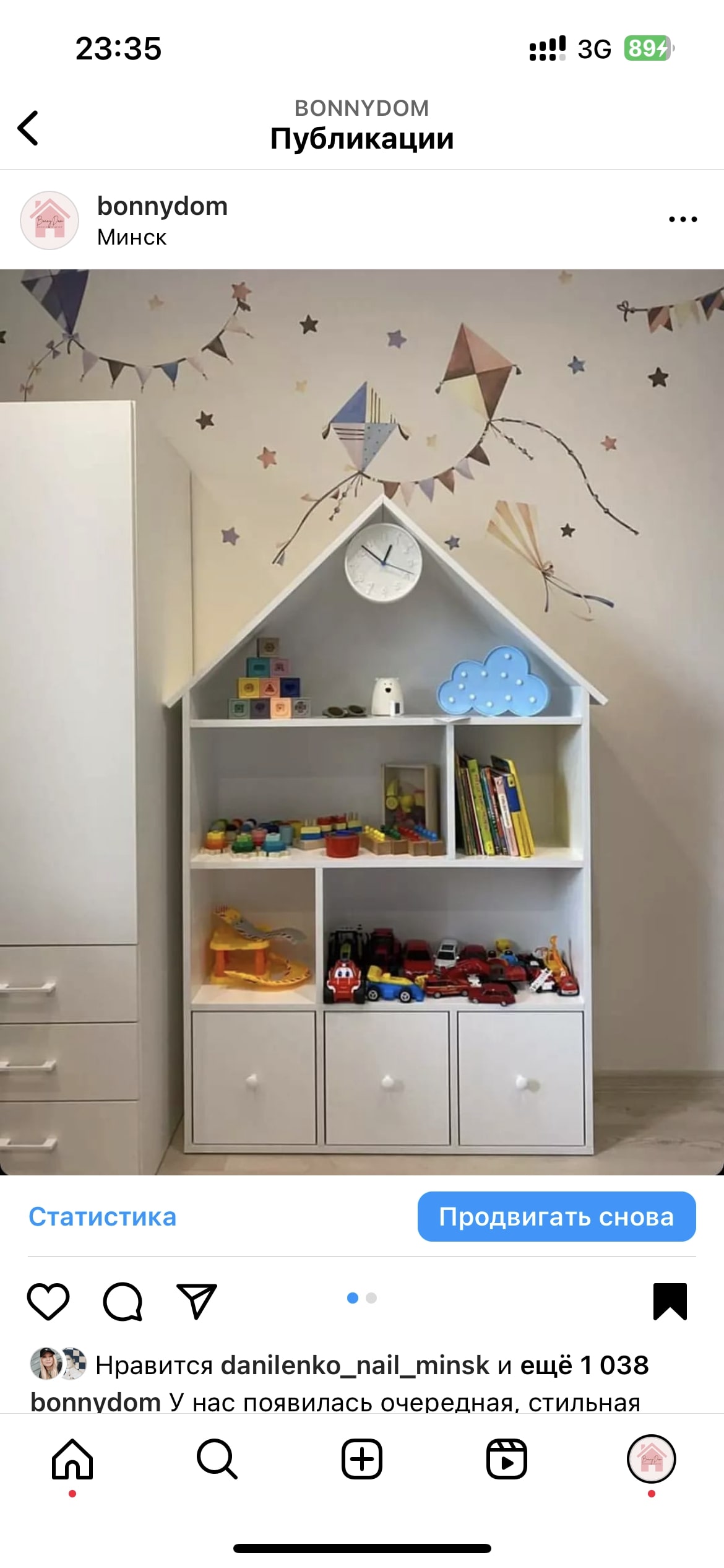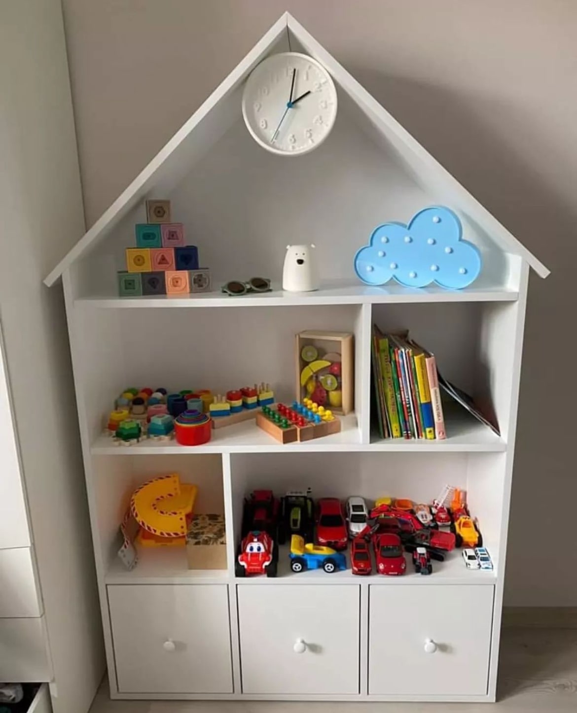 Домик-стеллаж украсит интерьер не только детской комнаты, модель такого домика подходит под любой возраст. Стильный, большой и очень вместительный!