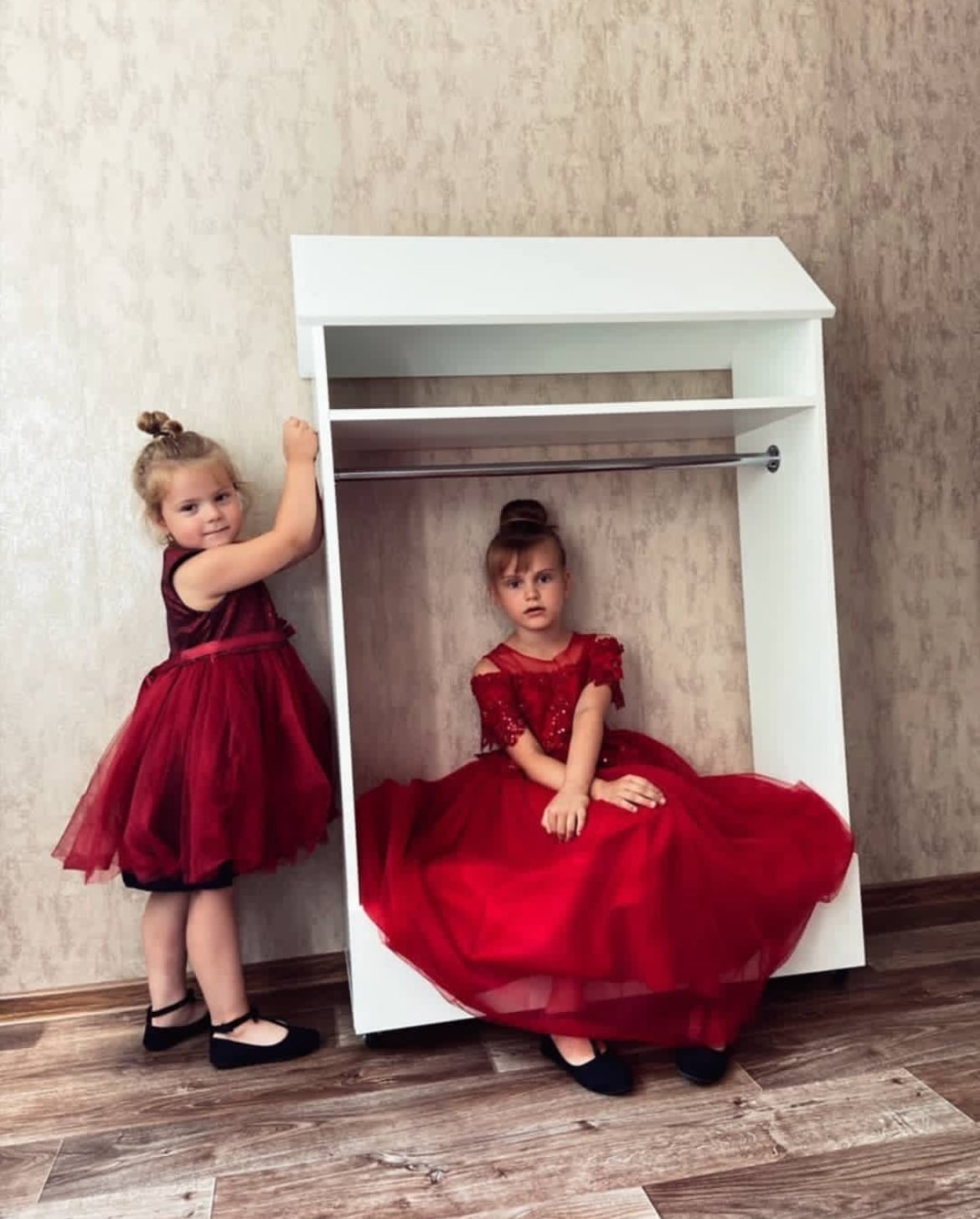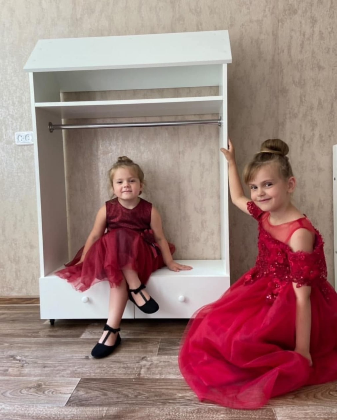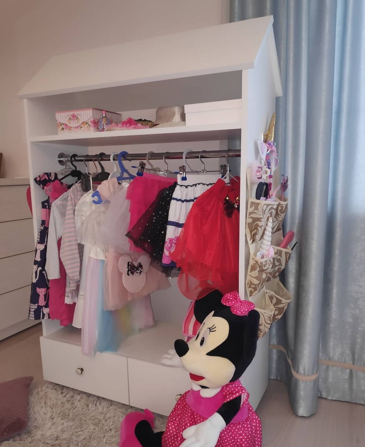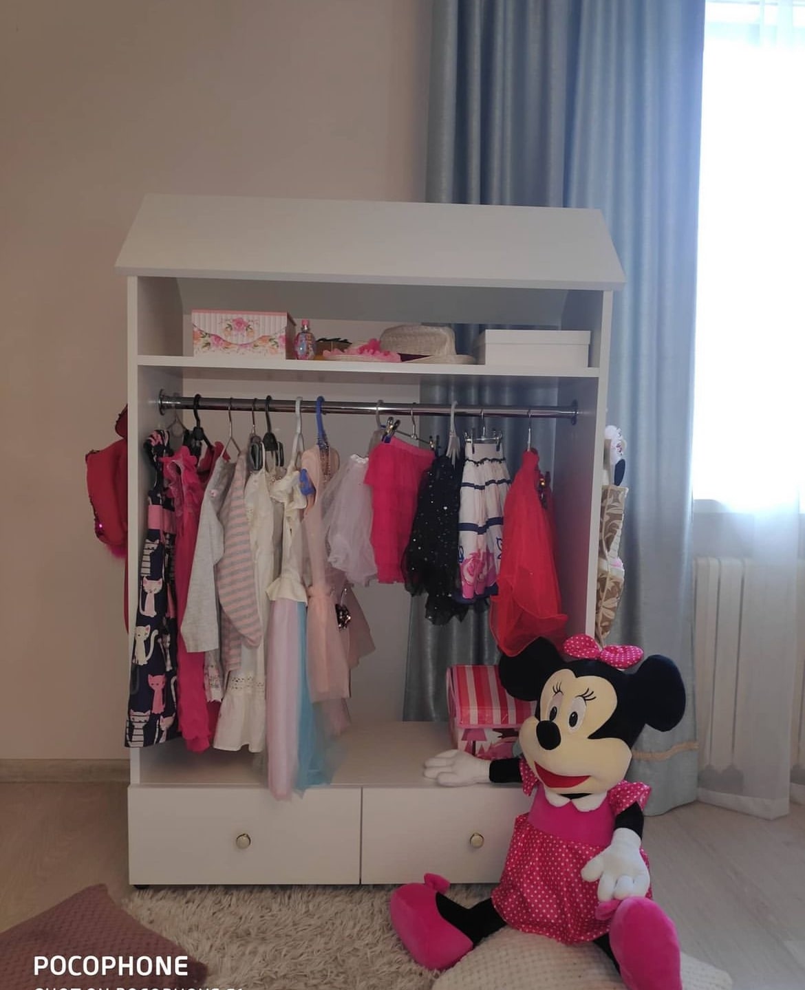 Компактный "шкаф" на колесиках, что очень удобно - можно легко передвигать. Внизу две шуфляды, и вверху полочка для аксессуаров.