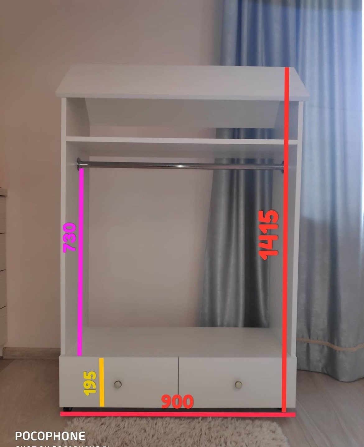 Размеры: высота 1415мм, ширина 900мм, глубина 330мм.