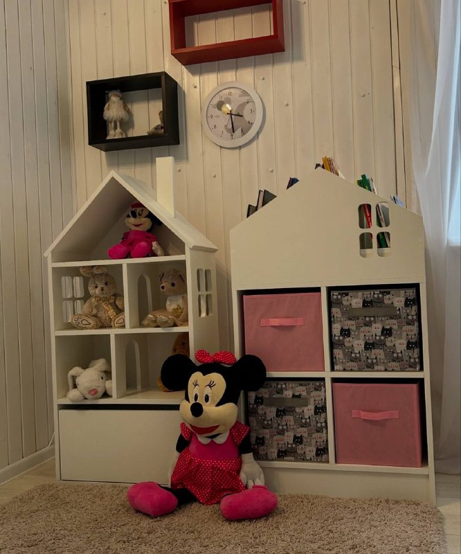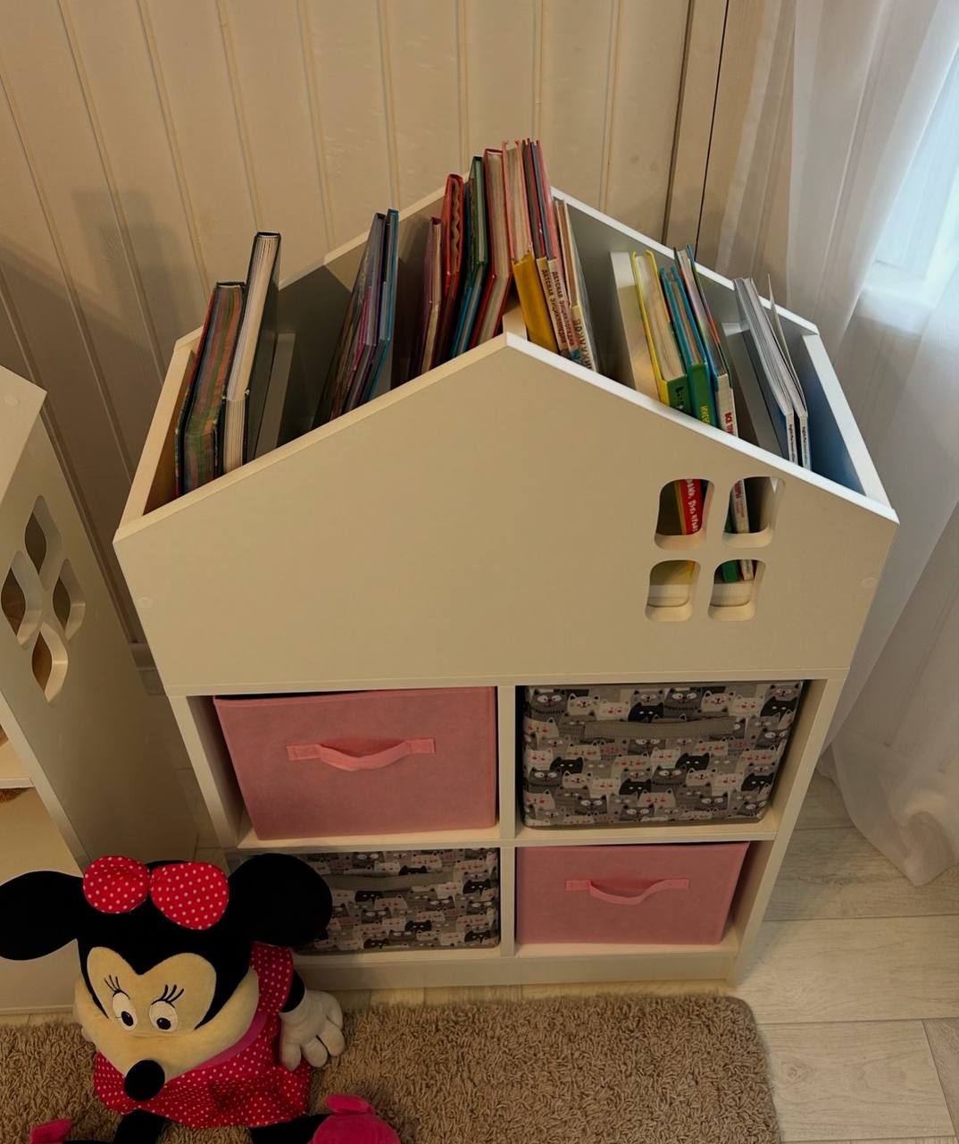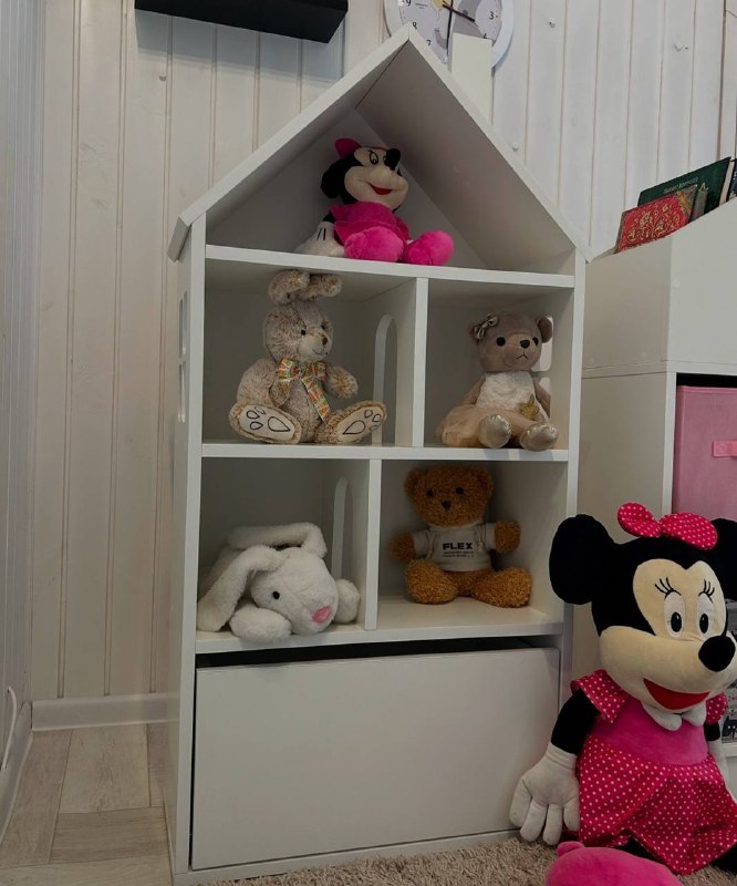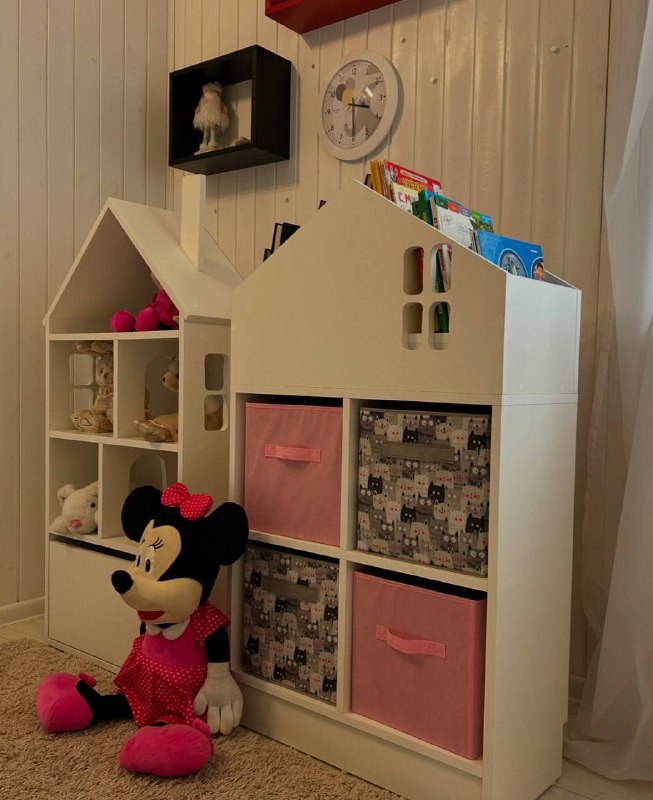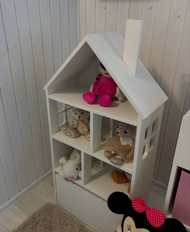 Новая модель полочки-стеллажа для книг, ящиков для хранения вещей и домик-стеллаж с выдвижным ящиком для игрушек.