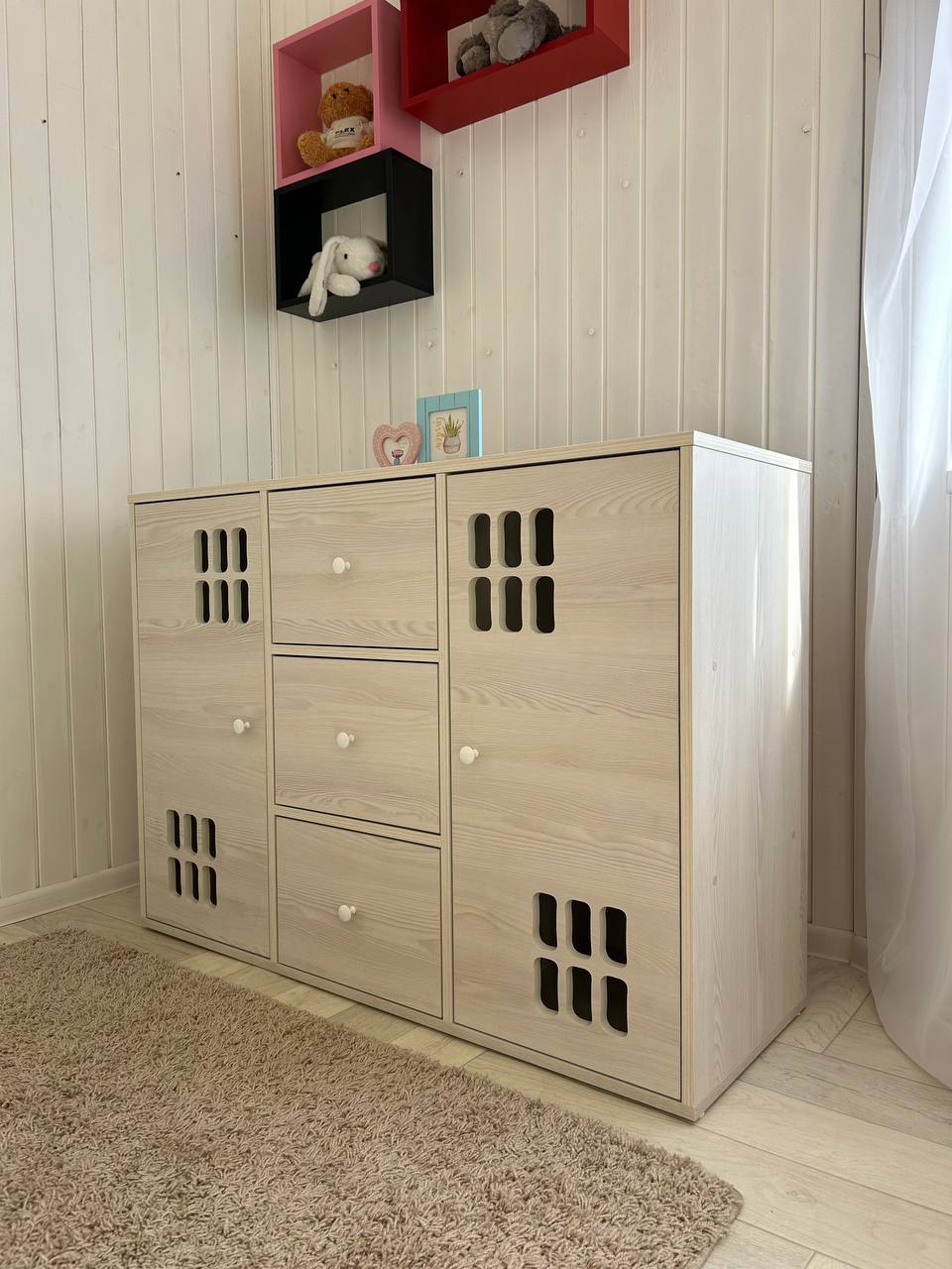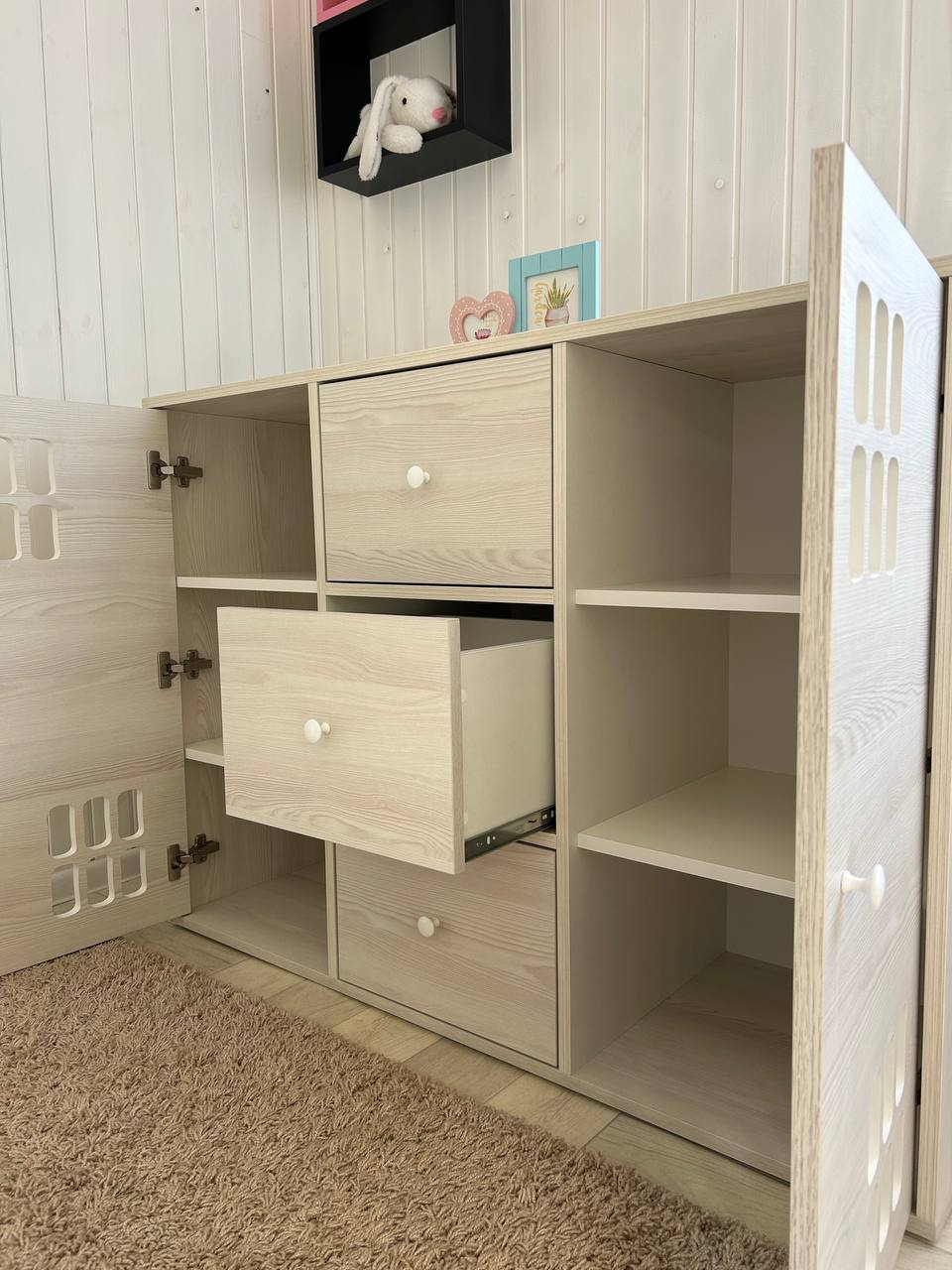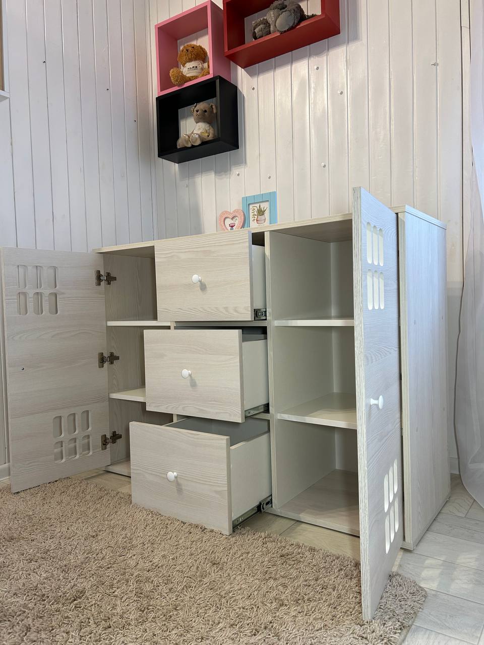 В детской комнате важно создать пространство, где ребенок будет чувствовать себя комфортно и уютно. Одним из ключевых элементов в организации такого пространства является правильное хранение вещей. В этом нам поможет комод-стеллаж, который не только обеспечит порядок, но и добавит стиль в интерьер. Комод выполнен в цвете ясень снежный.