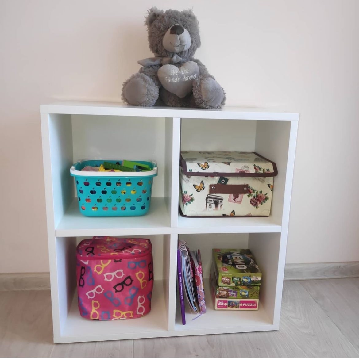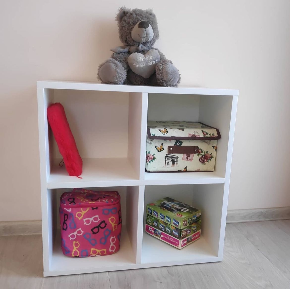 Компактный кубик-стеллаж всегда найдет место в детской комнате.