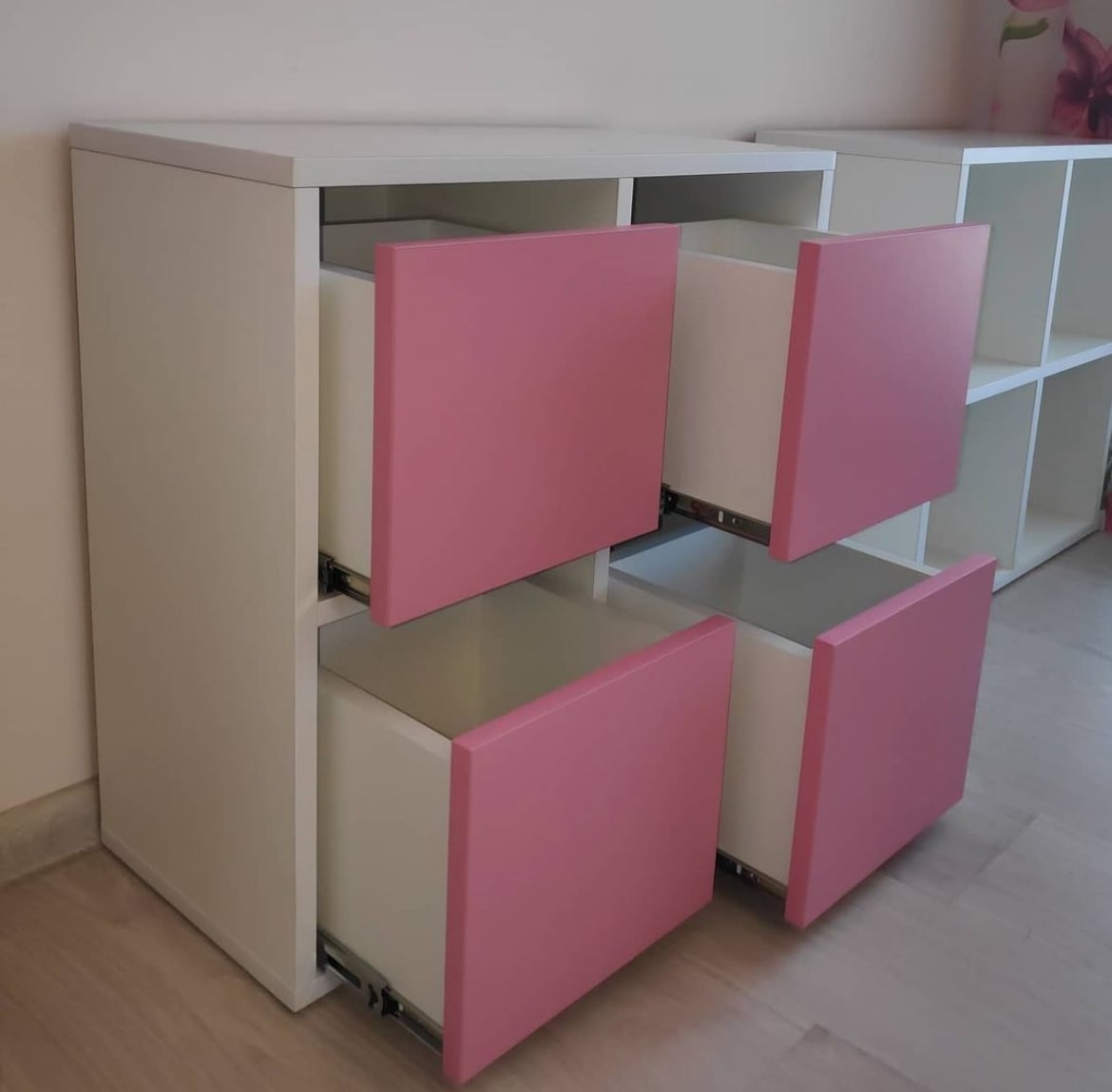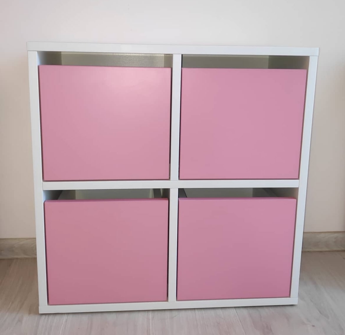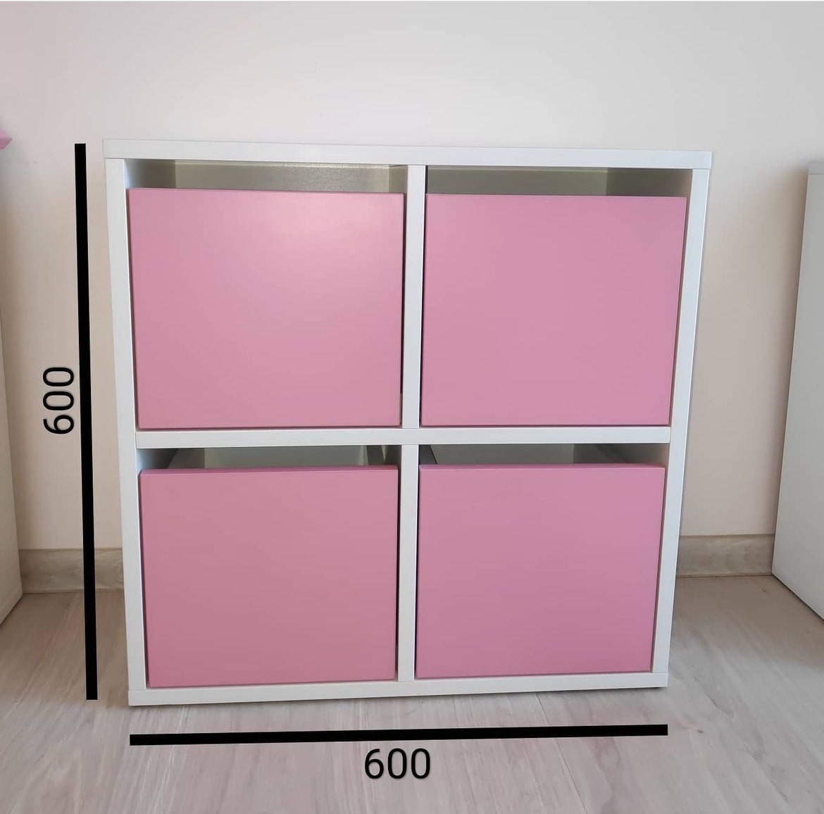 Стеллаж-кубик с четырьмя выдвижными ящиками.