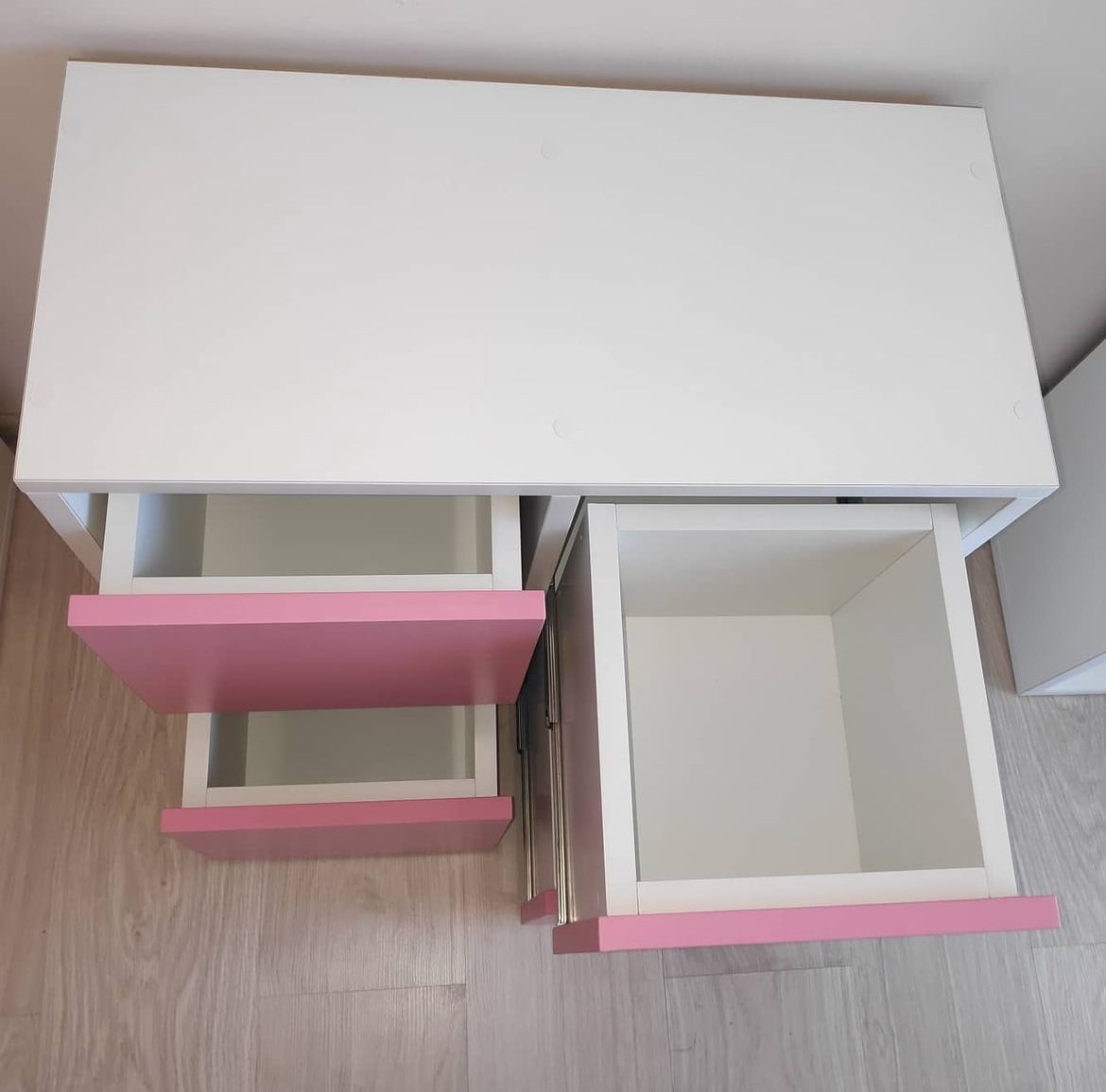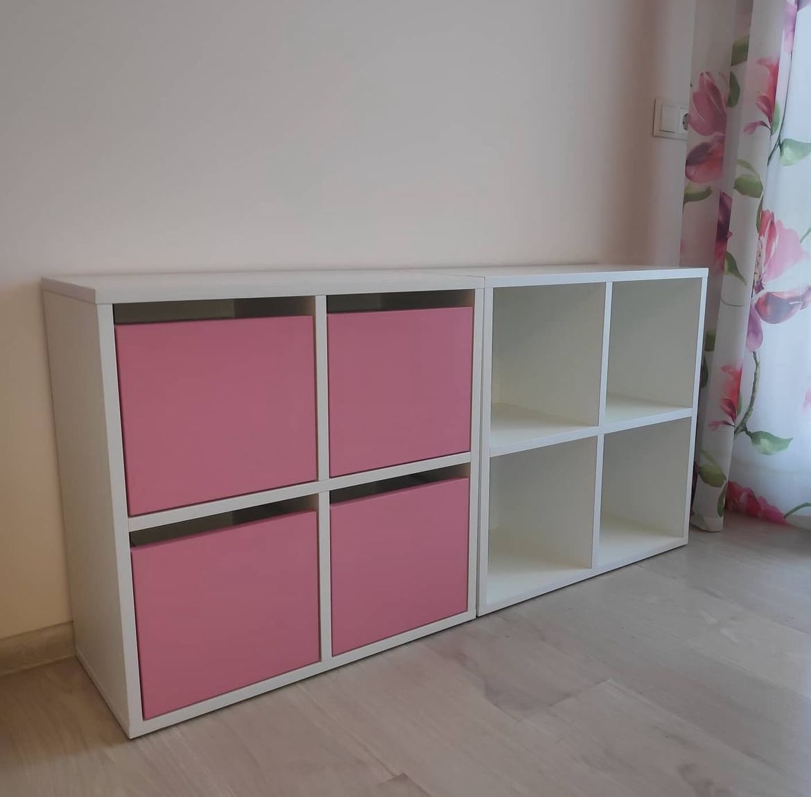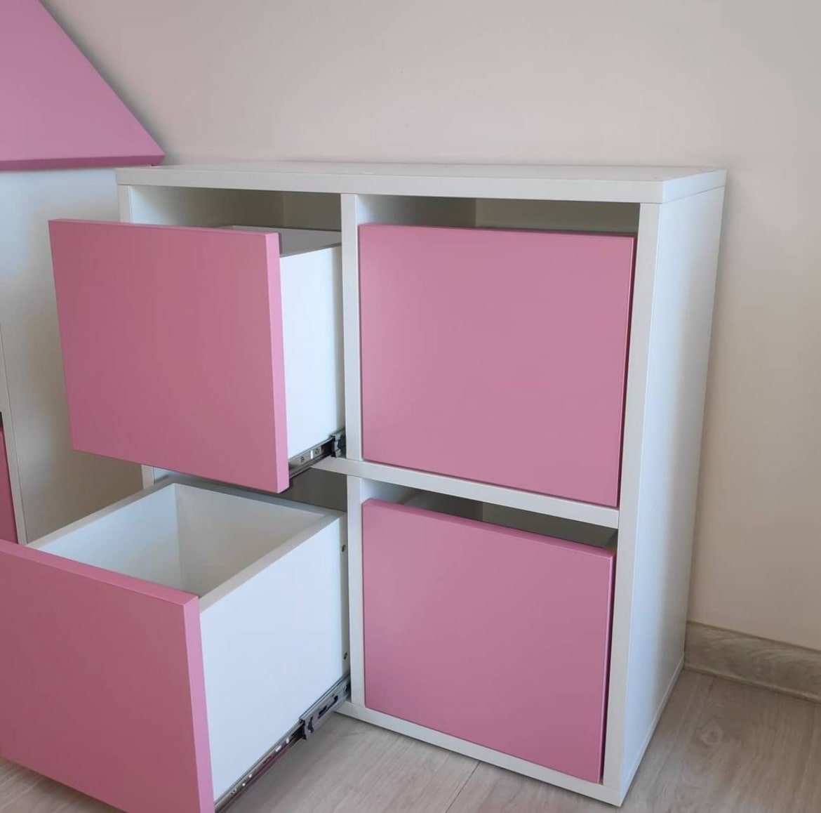 Стеллаж-кубик с четырьмя выдвижными ящиками.